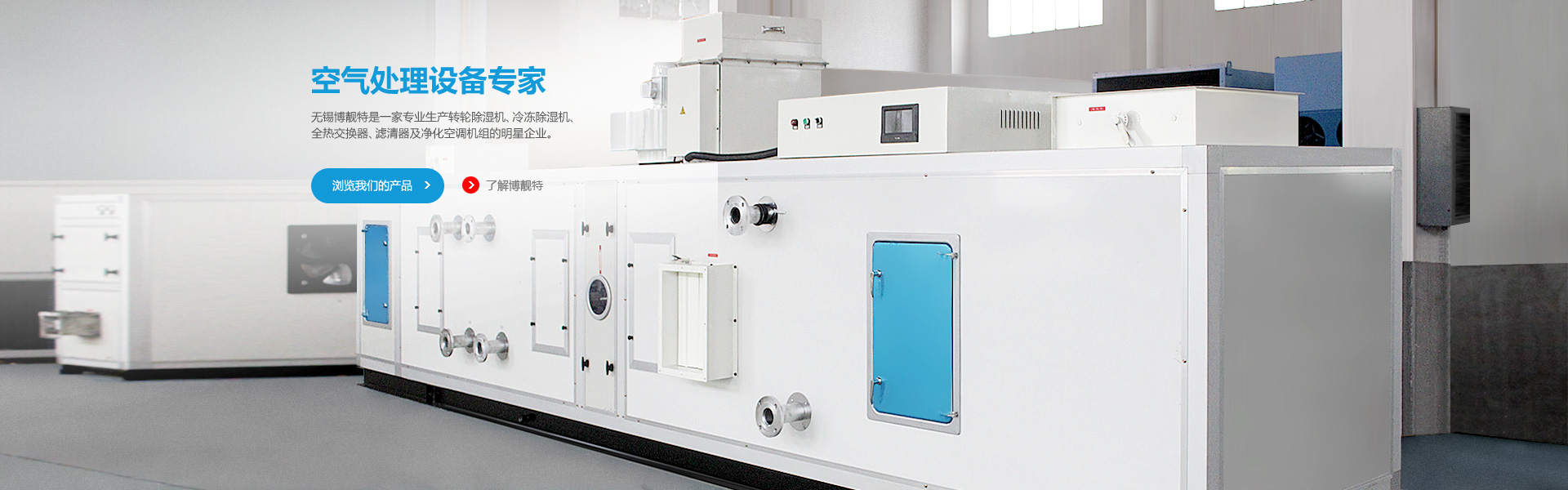 無錫博靚特空氣處理設備有限公司是一家專業(yè)生產(chǎn)轉輪除濕機、冷凍除濕機、恒溫恒濕機、全熱交換器、新風處理機及凈化空調機組的明星企業(yè)。 公司座落于中國長三角的中心城市——江蘇省無錫市。公司背鄰太湖,旁倚錫宜高速和…